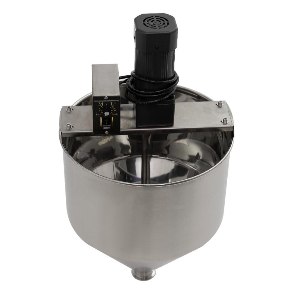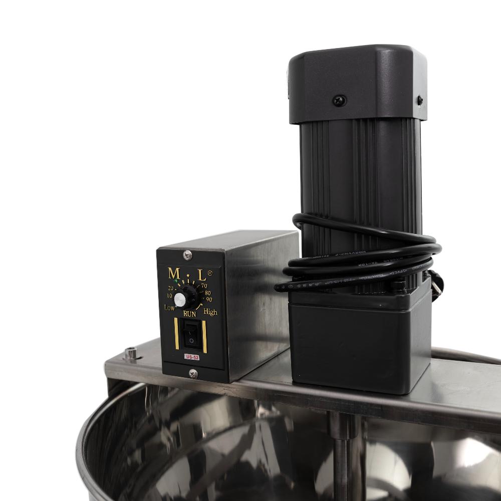 - Встроенная система перемешивания. Месильный орган с отдельным приводом постоянно перемешивает продукт в бункере, предотвращая образование комков, осадка и расслоение, что особенно важно для вязких и нестабильных составов.