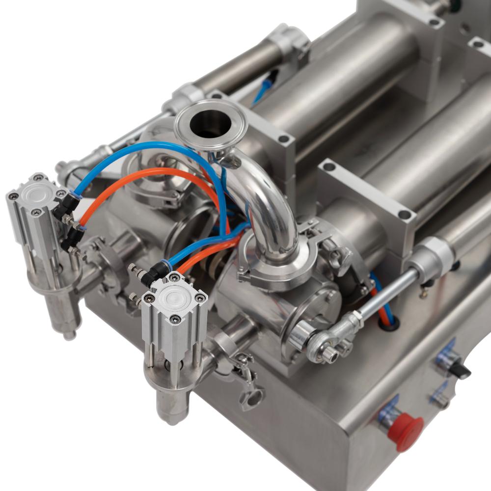 - Гибкая регулировка объёма и скорости. Ход поршня легко настраивается ручным колесом в диапазоне 100-1000 мл на каждую головку, а пневматические клапаны позволяют регулировать скорость наполнения и всасывания для оптимальной работы с различными продуктами.